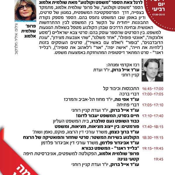 ביום רביעי 10.4.13 יתקיים ערב עיון לרגל צאת הספר "משפט…
